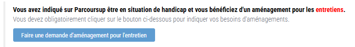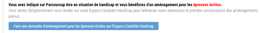 ➡️ Après votre connexion, un bloc intitulé « Votre demande d'aménagement lié à un handicap » sera affiché.